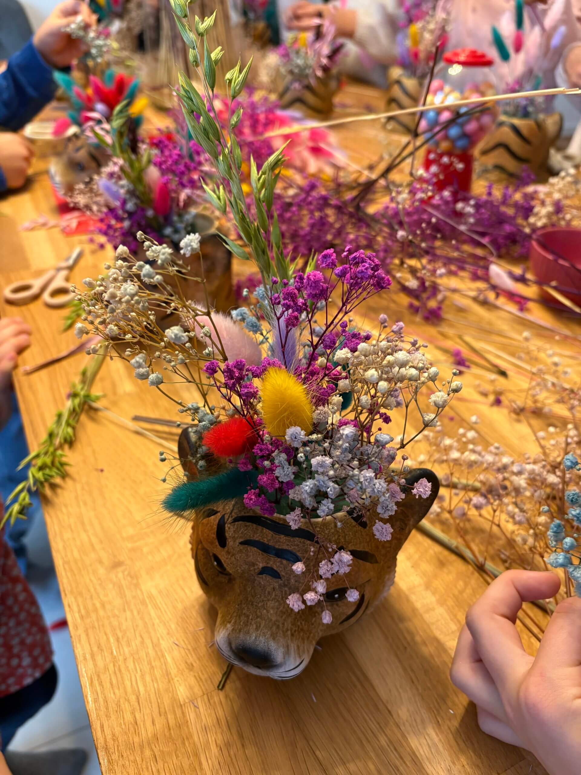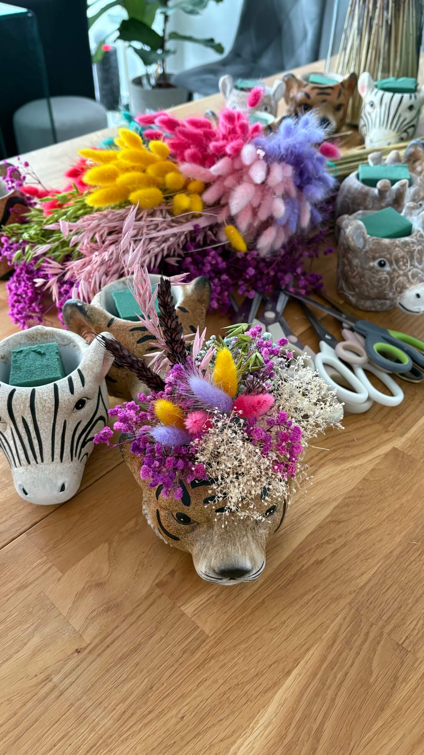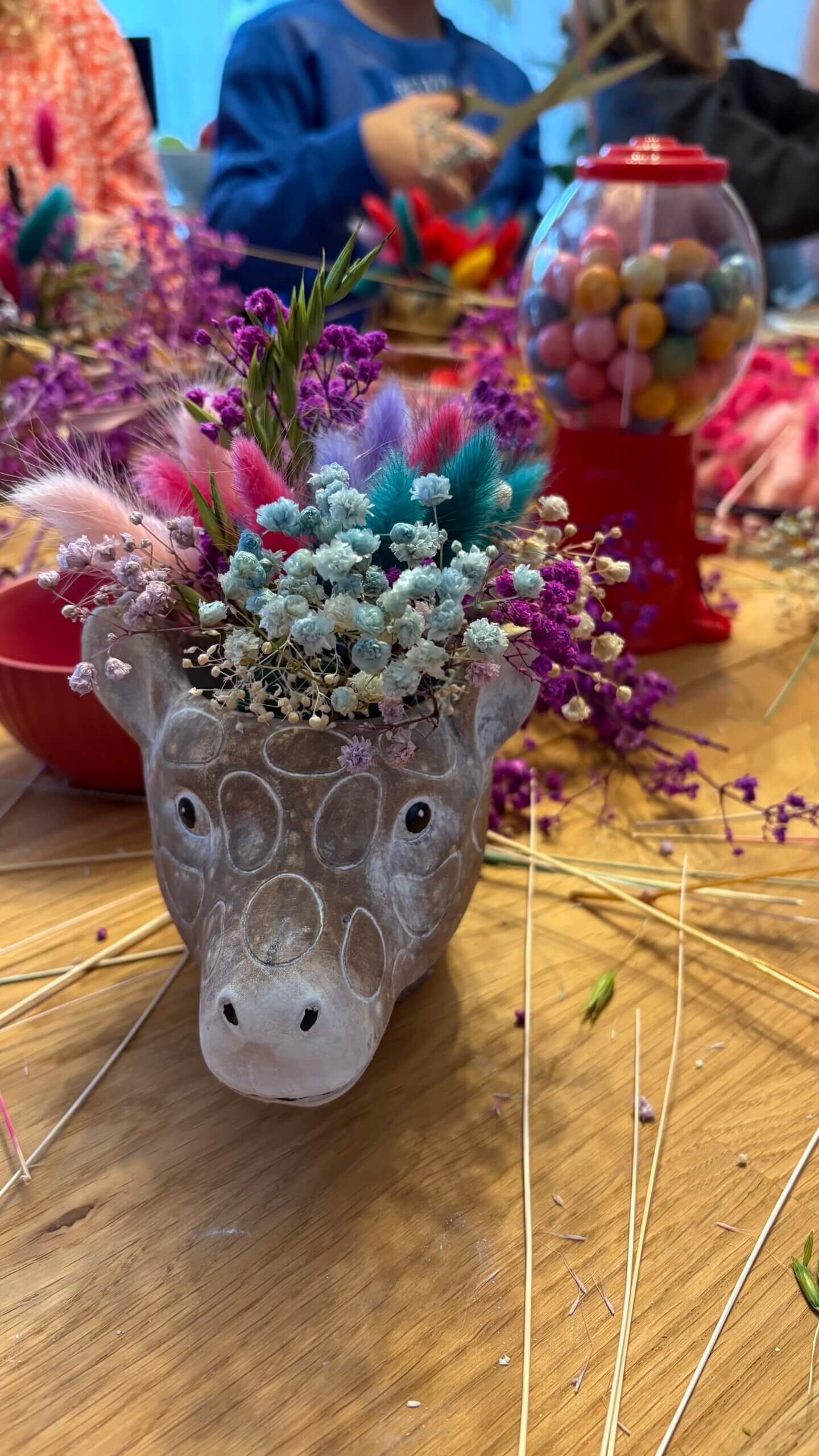 Gemeinsam schauen wir im Voraus was am Besten für Eure Geburtstagsgruppe geeignet ist und ihr verbringt einen tollen, entspannten Nachmittag bei uns. Egal ob kleine Trockenblumenkränze oder schöne individuelle Trockenblumengestecke in Tierübertöpfen, Gläser bemalen oder wundervolle Sonnenfänger basteln, das Beste daran ist, dass jedes Kind am Ende super stolz seine Kreation mit nach Hause nehmen kann. Selbstverständlich werden die Kids auch mit Snacks und Getränken versorgt und es laufen fetzige Kinderlieder, damit es ein rundum gelungener Geburtstag wird.