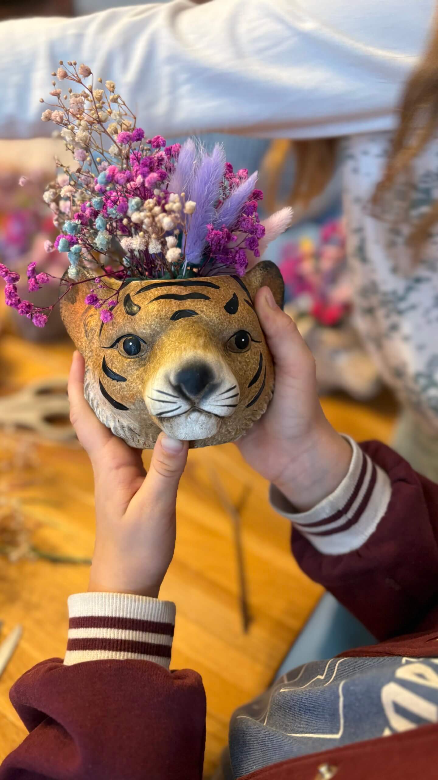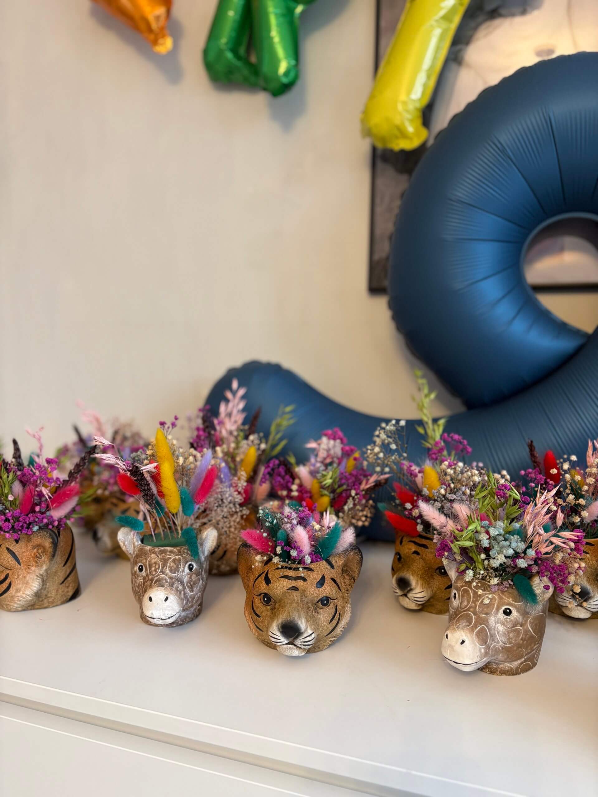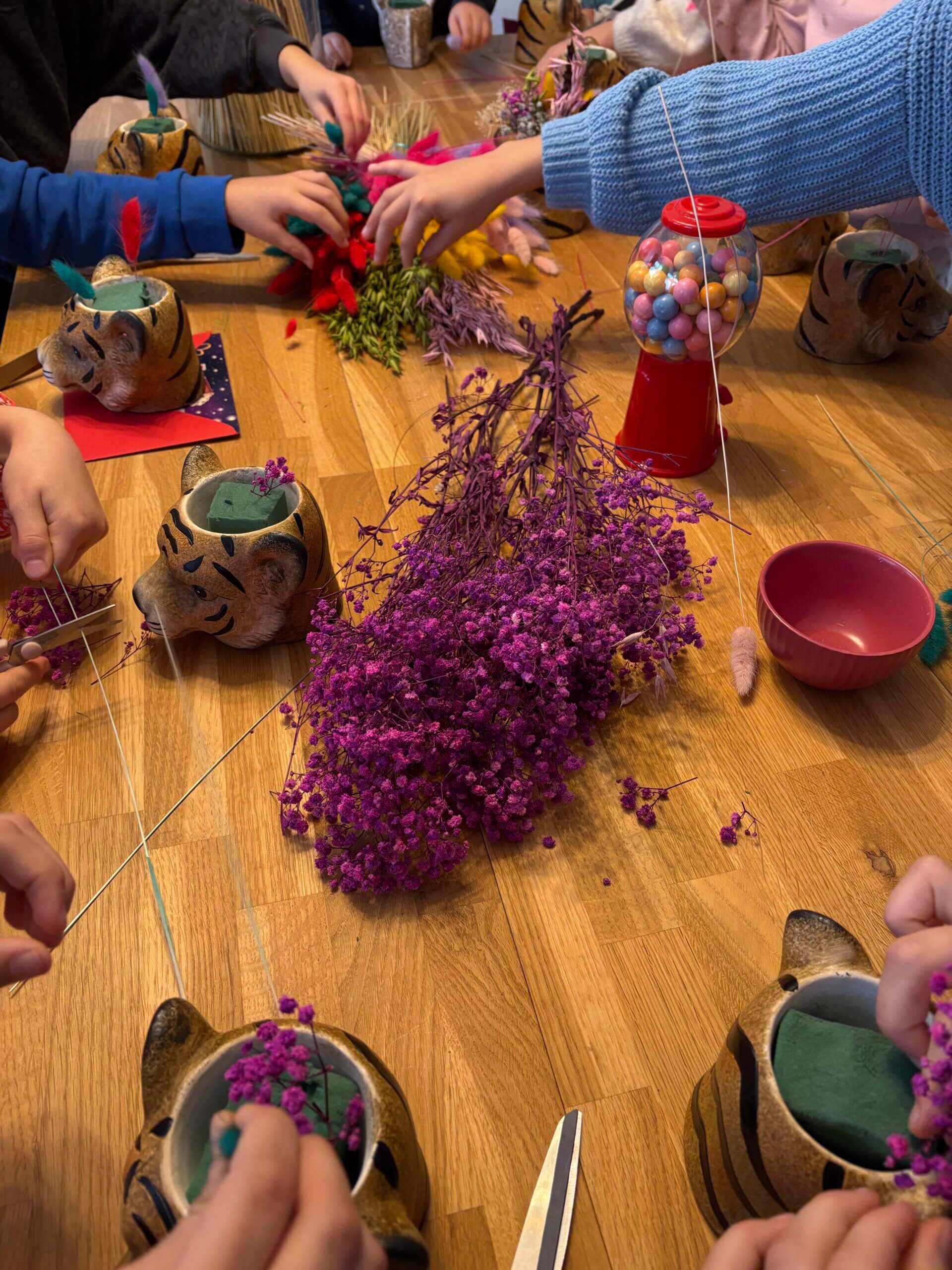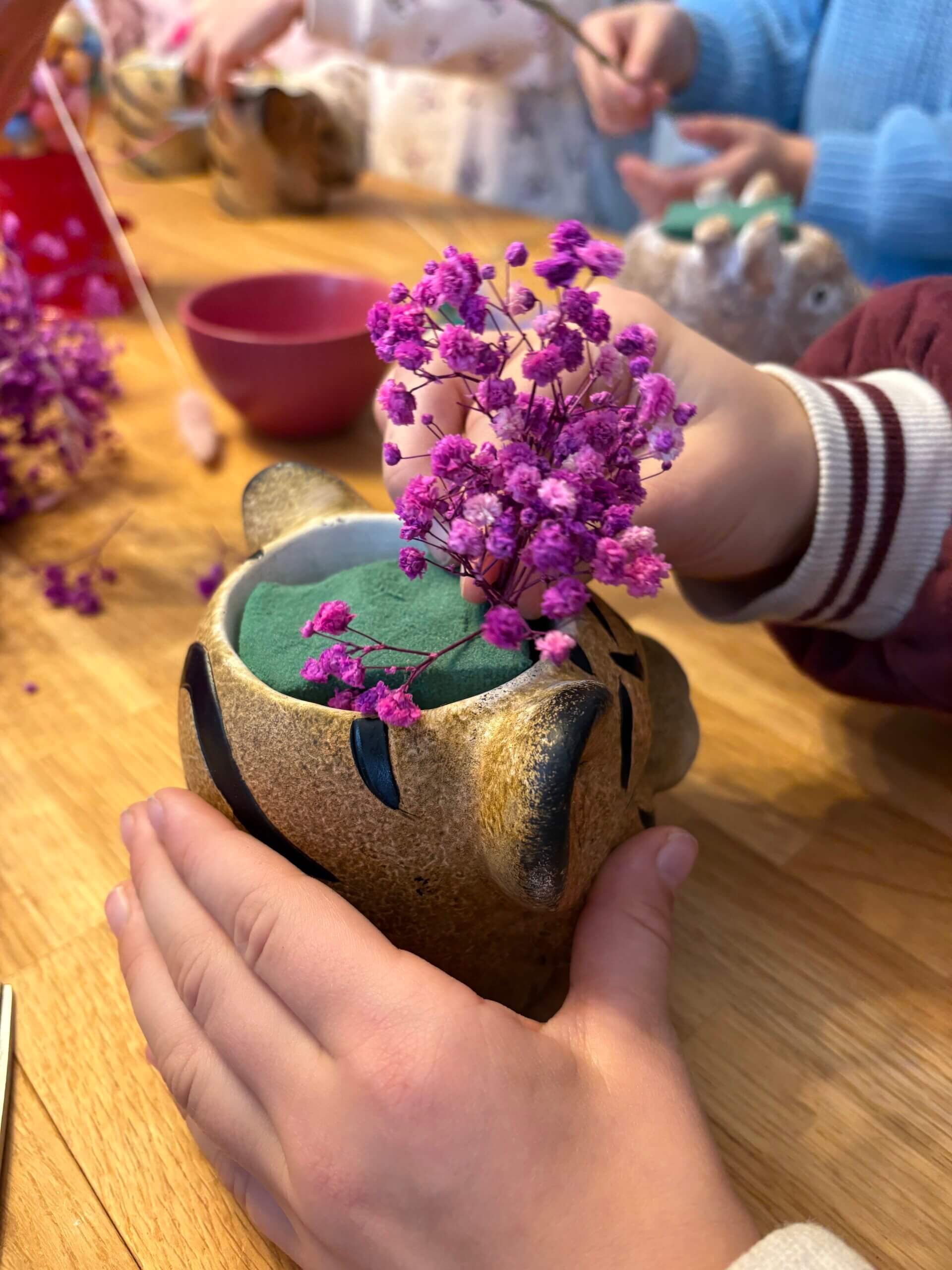 Gemeinsam schauen wir im Voraus was am Besten für Eure Geburtstagsgruppe geeignet ist und ihr verbringt einen tollen, entspannten Nachmittag bei uns. Egal ob kleine Trockenblumenkränze oder schöne individuelle Trockenblumengestecke in Tierübertöpfen, Gläser bemalen oder wundervolle Sonnenfänger basteln, das Beste daran ist, dass jedes Kind am Ende super stolz seine Kreation mit nach Hause nehmen kann. Selbstverständlich werden die Kids auch mit Snacks und Getränken versorgt und es laufen fetzige Kinderlieder, damit es ein rundum gelungener Geburtstag wird.