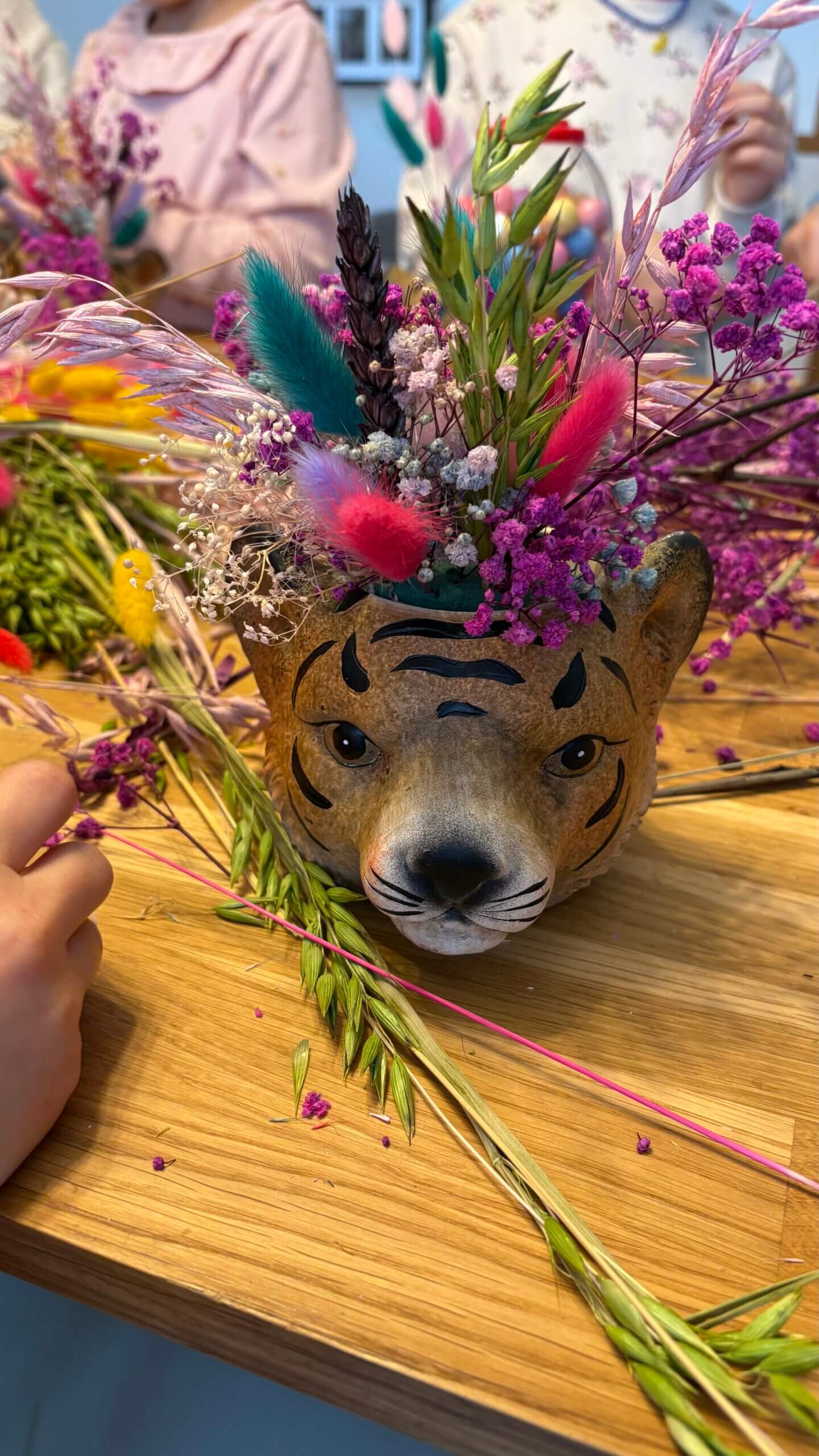 Info: Die Kinder sollten für den Flowerhoop-Workshop mindestens 8 Jahre alt sein. Beim Gesteck-Workshop können Kinder bereits ab 4 Jahren teilnehmen. Ihr kennt die Kinder jedoch am besten und solltet daher überlegen, ob Sie Spaß daran haben ca. 1,5 Stunden zu basteln.