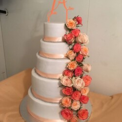 Die selbstgemachte Hochzeitstorte passte selbstverständlich auch mit den frischen Rosen in Apricottönen zum roten Faden, der sich durch die komplette Hochzeit zog.