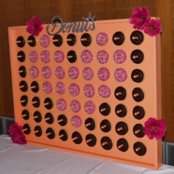 Unsere tollen Stahlherzen wurden mit wahnsinnig schöner Blumendeko für die Gästebuchbilder und die Dekoration im Eingangsbereich verwendet und auch unsere Donutwand kam bei Groß und Klein beim Nachtischbuffet super an.